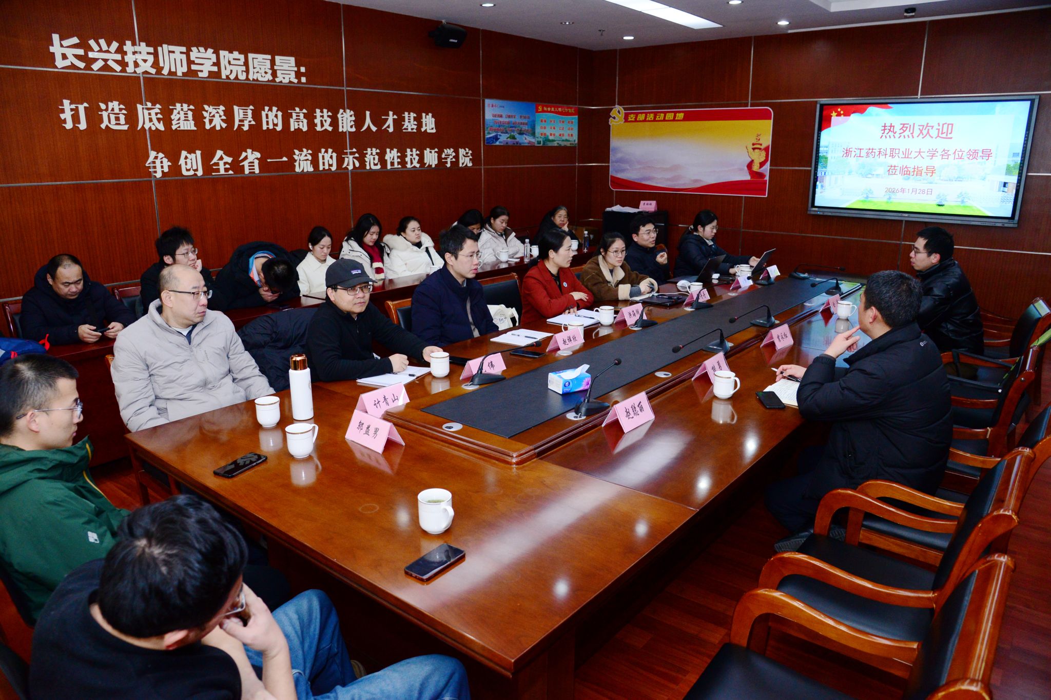 为深化校政合作机制,探索党建引领职业教育高质量发展新路径,1月28日下午,医疗器械学院教工党支部与长兴国家大学科技园机关党支部举行党建共建签约授牌仪式。学校党委委员、宣传部部长戴桂平,长兴国家大学科技园党组书记、副主任樊长朋,省医疗器械行业协会、学校产教融合与社会合作处、医疗器械学院党委班子及教师代表出席本次活动。