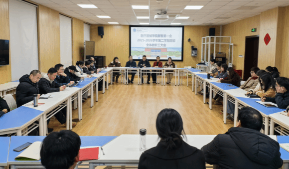 律回春渐,新元肇启。为全面谋划部署新学期重点工作,进一步凝聚全院教职工奋进力量,2026年3月4日,医疗器械学院在图书馆多功能厅召开2026年春季学期期初教职工大会。学院领导班子及全体教职工参会。